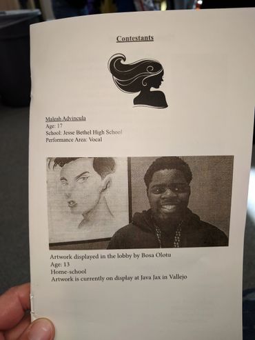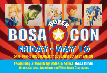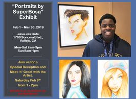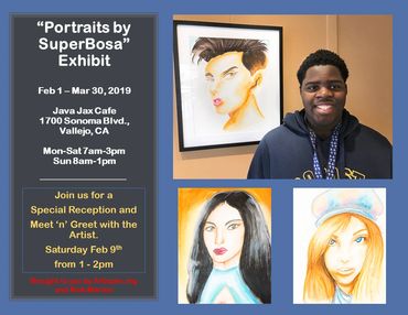 Bosa is a Vallejo native and his family is from Nigeria. He attends Mare Island Tech High School and does all the art he can in his spare time. His body of work ranges from paintings to sculpture to drawings, cartoons, and his newest medium is digital art. Bosa has been doing art non-stop since he was 5 years old!