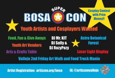 2019 we held the first annual SuperBosaCon!! anime type convention featuring youth art vendors, DJs, and Cosplay contest!